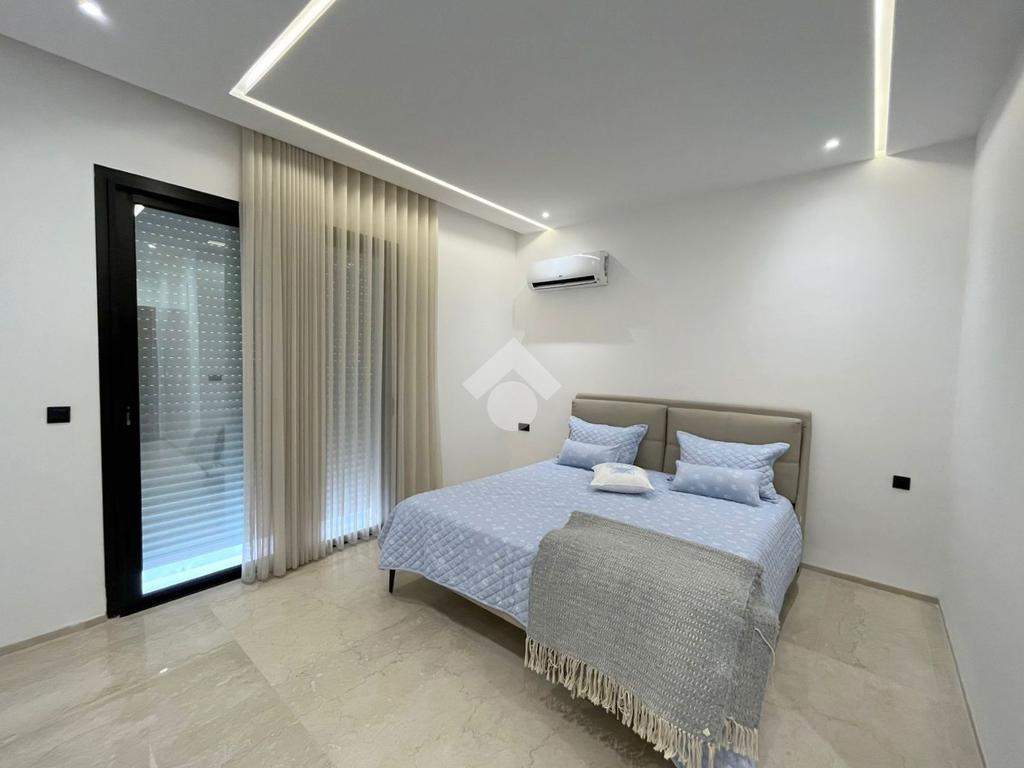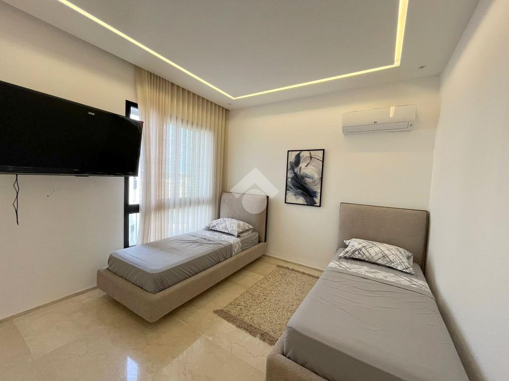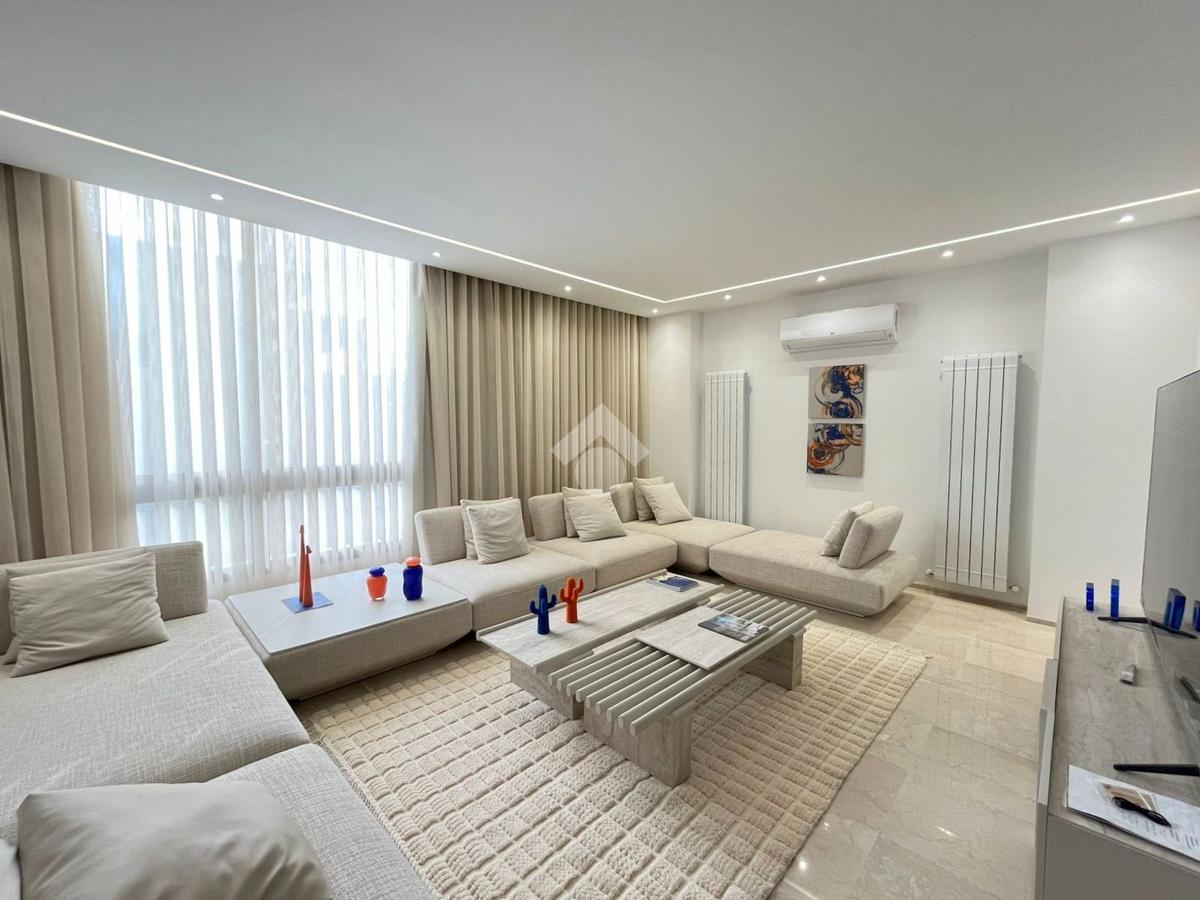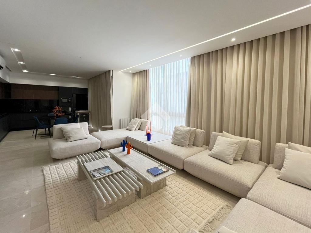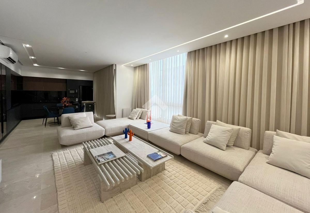 Cet appartement richement meublé et jamais habité se situe au septième et dernier étage d’une résidence récemment construite.
