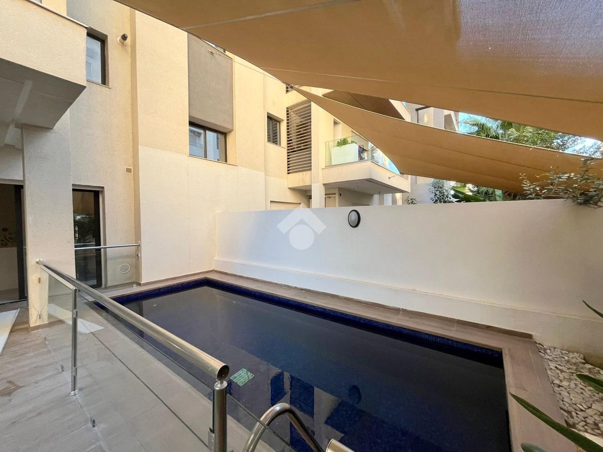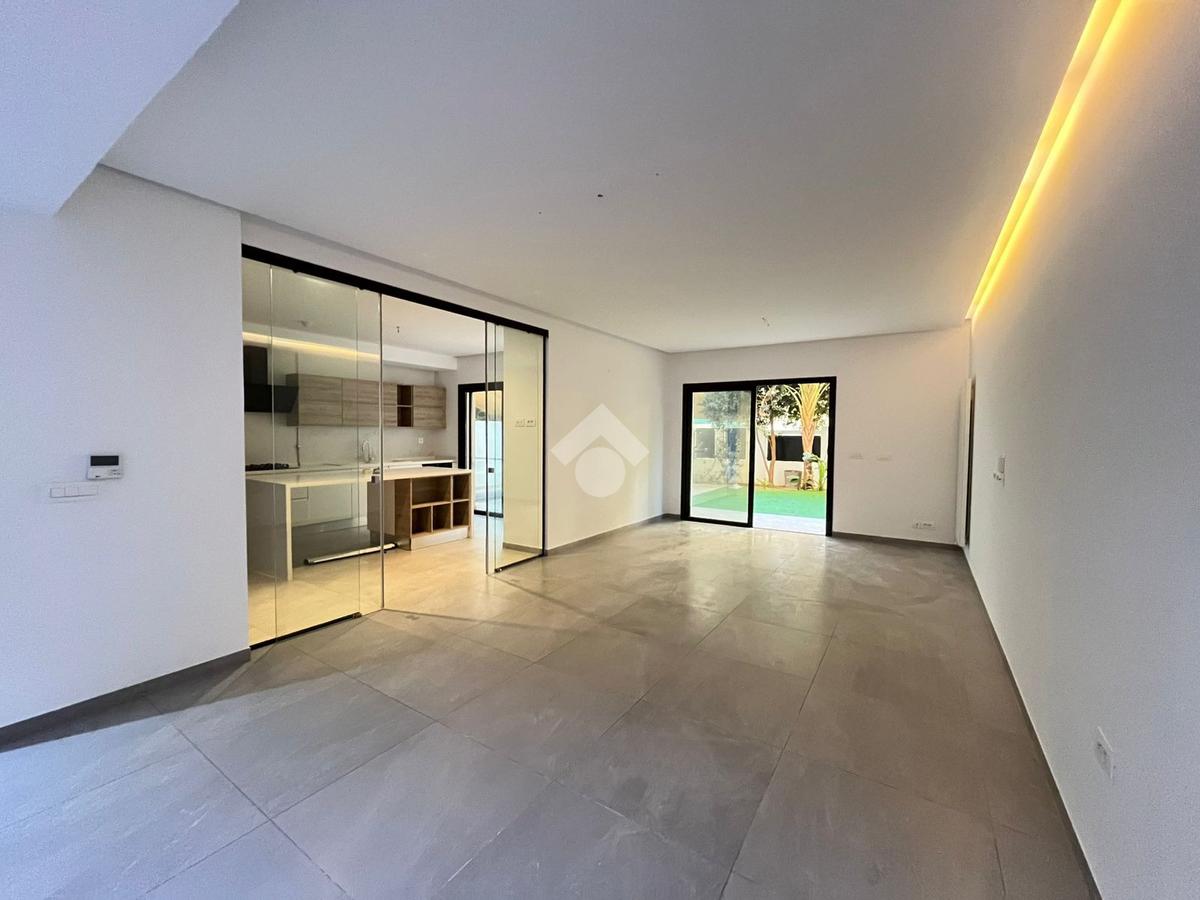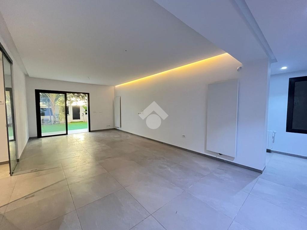 L’entrée s’ouvre sur un hall menant à une spacieuse pièce de vie donnant sur un jardin et une piscine privatifs, parfaits pour des moments de détente.