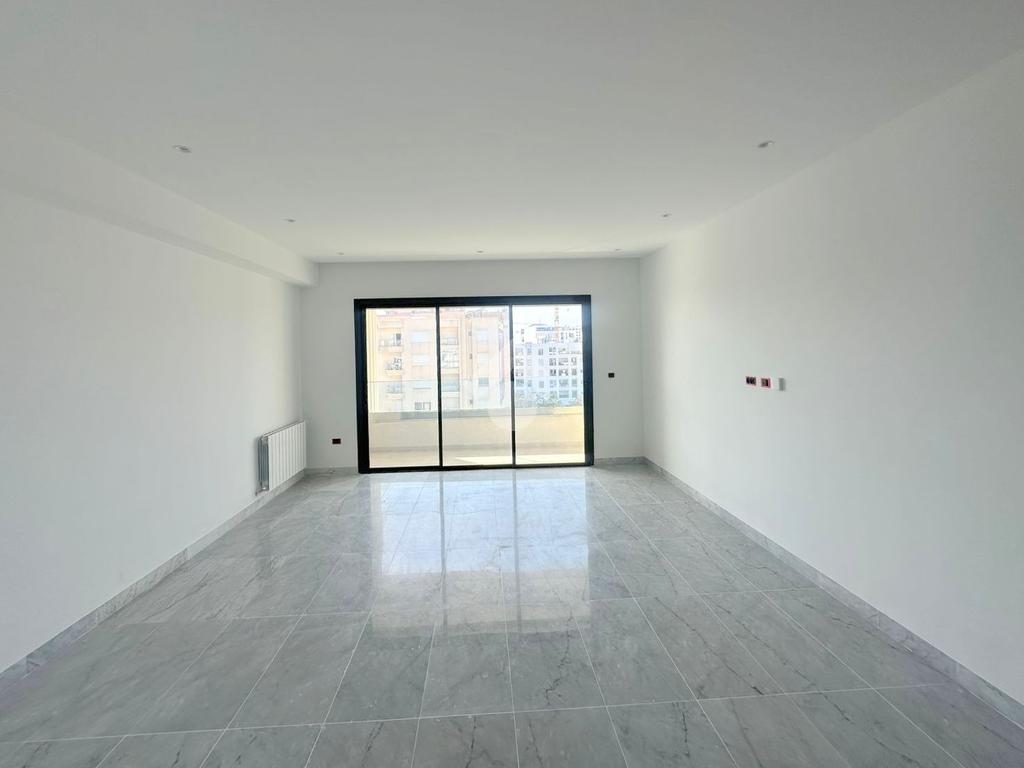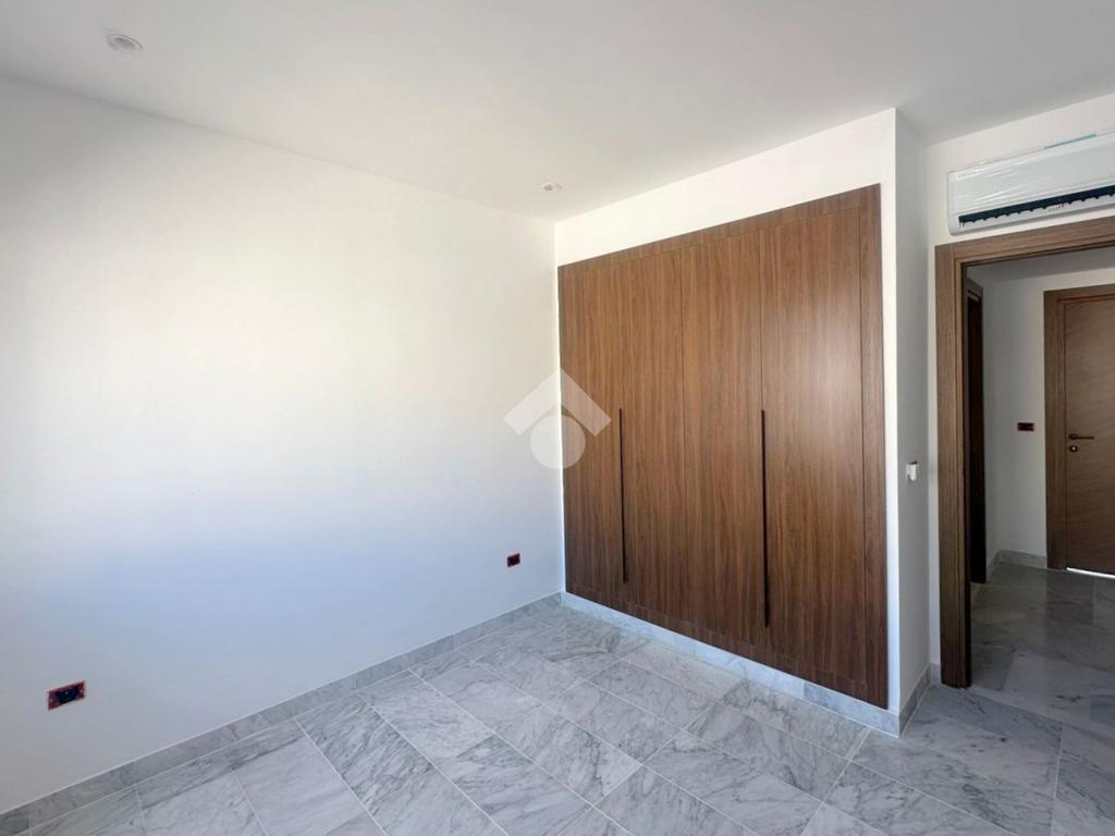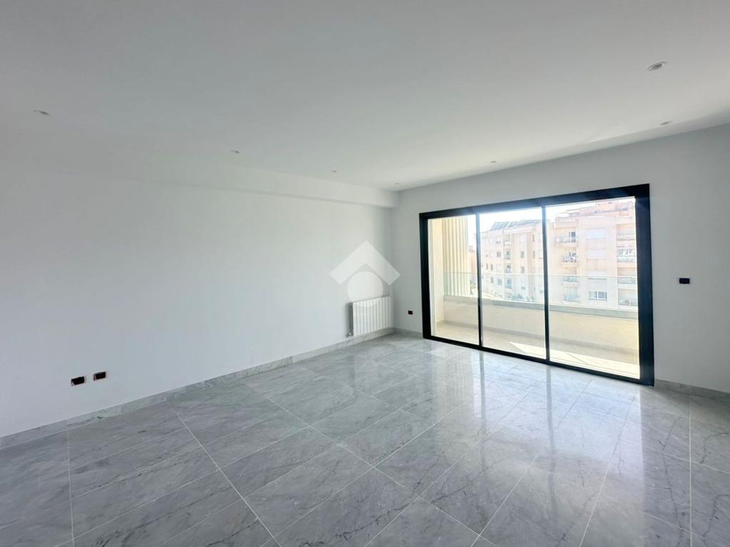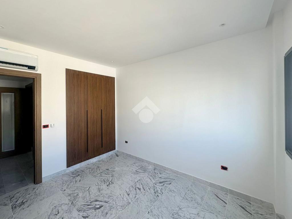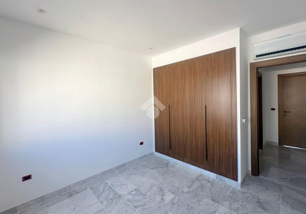 L’entrée s’ouvre sur un hall qui mène à une pièce de vie spacieuse et lumineuse, bénéficiant d’une vue dégagée grâce à son ouverture sur un balcon. La cuisine, entièrement aménagée et équipée, offre de nombreux espaces de rangement et comprend une plaque de cuisson, un four électrique, un micro-ondes et une hotte aspirante. Elle est complétée par un séchoir. Une salle d’eau pour les invités a également été prévue.